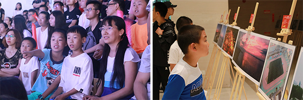 在主楼A座“风华艺苑”展厅,中小学生及家长参观了我的视角‘瞰’祖国 我与祖国共成长”2019年全国大学生无人机航拍作品大赛优秀作品展,观看了无人机航拍的视角下祖国美丽壮阔的大好河山、高校青年学子家乡独特的自然景观和人文景观、高校校园丰富多彩的校园活动,感受了无人机航拍技术带给人们的视觉震撼以及所呈现的科技之美、人文之美。