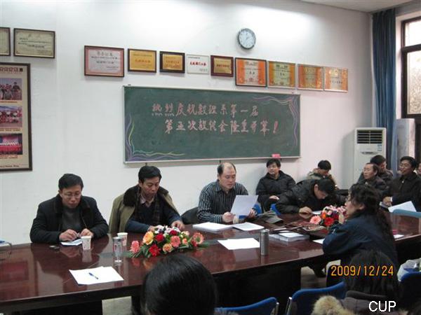 20091224,数理系第一届第五次教代会在数理系会议室胜利召开。校工会常务副主席陈崇河参加了会议,并作了重要讲话。