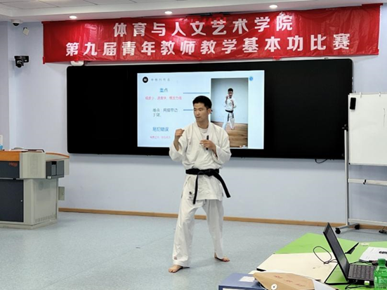 体育与人文艺术学院第九届青年教师教学基本功比赛于2022年6月22日在四教107教室举行,共有5名青年教师参加了本次比赛。评委小组由学院教学与科研委员会的各位专家组成,学院四位领导均出席了本次比赛。