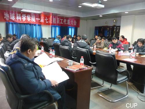 2011年1月11日,地球科学学院一届七次教职工代表大会在新综合科研楼11楼地球科学学院1103会议室召开,30名代表出席了这次会议。