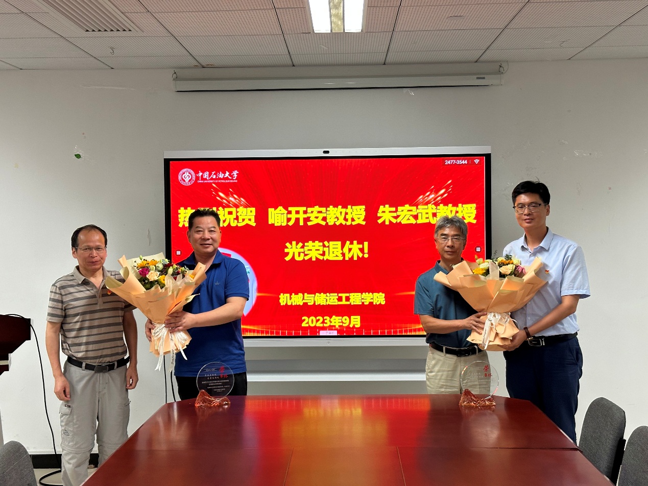 9月7日下午,机械与储运工程学院在主楼B921举办2023年下半年退休教师荣休座谈会,庆祝喻开安教授和朱宏武教授光荣退休。机械学院党委书记闫亮亮,院长李振林,副书记鞠斌杰,副院长刘书海、左丽丽,机电系教师参加了本次座谈会,会议由工会主席彭鹤主持。