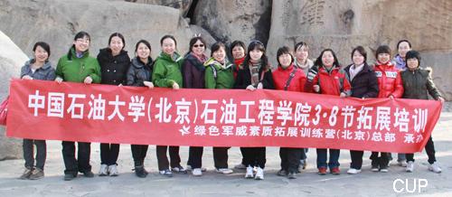 2012年3月8日,石油工程学院组织学院女教师在绿色军威素质拓展训练营进行了各项培训活动。项目包括参观中国人民解放军防化学院和防化研究所、真人CS对战心理训练、心理防御知识培训、爬石鹰山等。活动有20名女教师参加,并有10名男教师参加了绿叶陪同活动,整个活动在轻松愉快中渡过,既锻炼了身体、也学习了心理防御知识,同时也展示了老师们的军威风采。活动于中午11点开始到上午5:30结束。