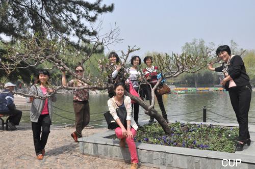 大家从学院徒步出发,约20分钟到达昌平公园。春天的昌平公园,景色优美,令人赏心悦目。绿绿的草坪和垂杨柳在林荫路两旁散发着清香的气息,粉红的桃花和雪白的梨花、灿烂的迎春花争香斗艳。驻足在水塘边,小鸭子悠闲地在水里游玩,让人不觉沉浸在这美景中心旷神怡。大家边走、边看、边拍照,汲取着大自然的韵味,享受着阳光沐浴的温暖。