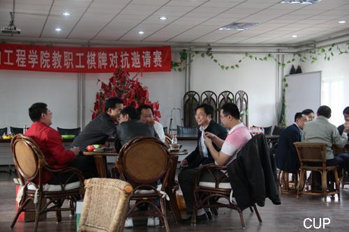 2012年4月28日下午3点,为了“庆五一、促交流”,由宁正福书记召集,石油工程学院在工程东楼职工之家开展“石油工程学院教职工棋牌邀请赛”,在活动宣传中特别强调了以下四点内容:1非常重要的密切交流的活动,需重视;2项目为够级\升级\象棋等;3教授最好参加,与其他老师切磋与交流;4非教授老师最好参加,交流的好机会要积极参与。党委书记宁正福教授组织参加够级活动,院长陈勉教授组织参加围棋活动,副院长程林松教授组织参加乒乓球活动,活动一直进行到晚上7点。