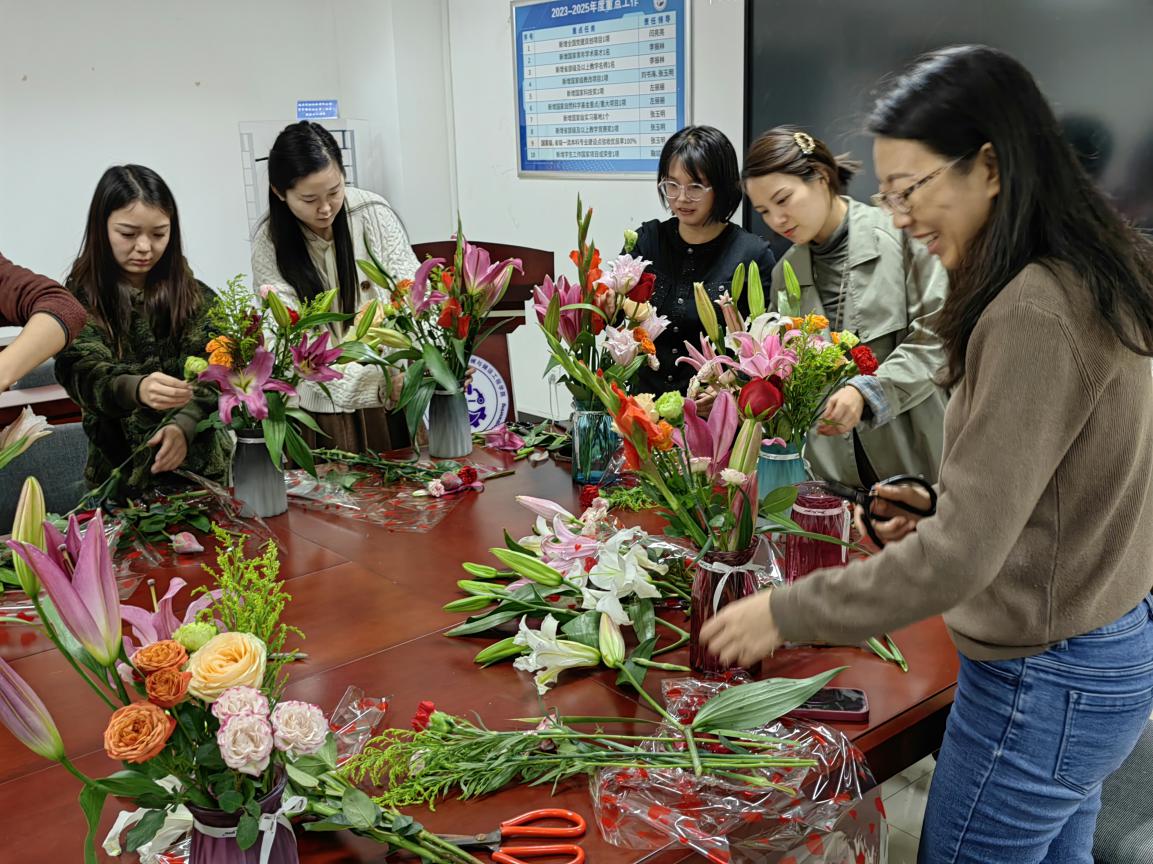 学院工会邀请花艺老师来到现场,首先为各位老师讲解了鲜花的种类特点及保养方式,不同类型的花朵适用于不同的插花位置及插花技巧和造型,同时针对各自老师的喜好和性格,可采用造型各异的搭配,既不失活泼个性,又饱含婉约气质。经过不断的设计修改,一瓶瓶插花作品展现在大家眼前,大家围观欣赏,愉快交流,在热烈而愉快的气氛中,圆满结束本次花艺设计活动。