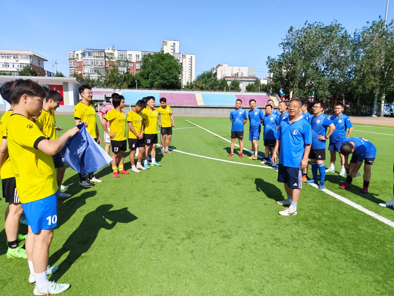 赛前,徐春明院士发表了激情洋溢的讲话,用足球的个人突破和团队配合教育学生,在未来工作中不仅要注重个人能力提高,也要融入团队,与团队一同发展,对即将毕业的学生还提出了一些殷切的希望,同时送出了美好的祝愿。