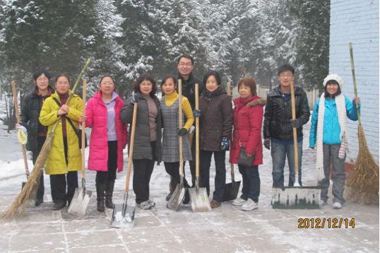 近日,北京的雪,下得很美,很慷慨。纯美的石大校园里,闪动着一个个青春的身影。14日早晨,外国语学院党委书记肖中琼老师率领外国语学院的教职工在北校区的责任区里,用外语人特有的热情和细致,让冰雪变得火热,让劳动变得轻盈。