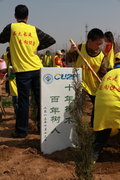 60余名师生从昌平出发,经过40分钟的车程,来到植树地点。大家在林区指导员的指挥下,挖土坑、栽树苗,经过一个多小时的努力,共种下了五十四棵拍树,这片迎风摇曳的绿色,不仅记录了大家的辛勤与汗水,更代表了石大远程为首都蓝天工程做出的贡献。