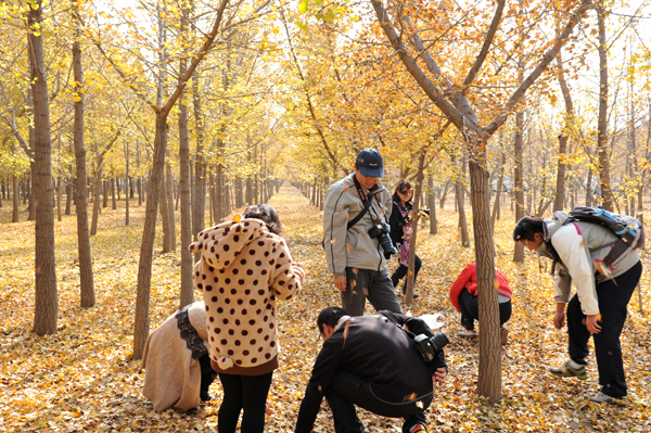 日学院文娱协会组织了金秋游银杏林的自行车骑行和摄影活动。中午大家从学院出发,骑行约