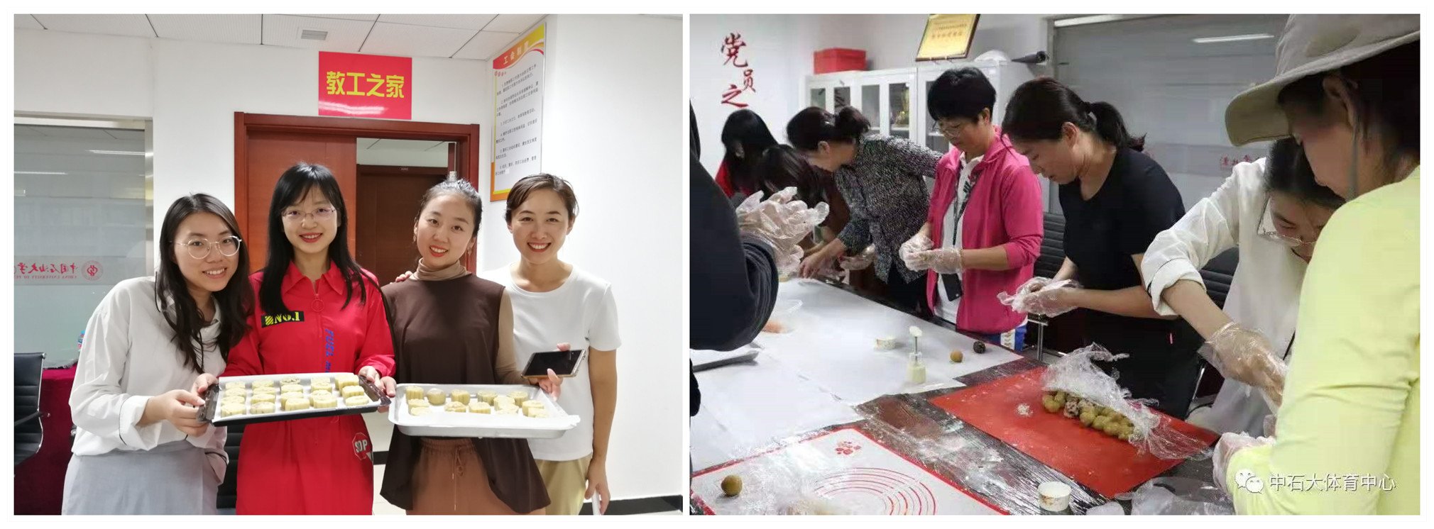 ] 中国一年一度的传统佳节——中秋节即将到来,庆祝中秋最应景的莫过于月饼,体育与人文艺术学院邀请各位老师在9月12日于教工之家参加此次的迎中秋,做月饼活动。许多老师闻讯都前来参加,非常有兴致的想要亲手做出月饼,并品尝自己制作的月饼。在工会的组织下,早上八九点老师们就已经开始忙碌了起来,大家心情激动,跃跃欲试,很快,现场就呈现出了一片繁忙景象:他们戴起手套,在冯老师的指导下揉搓面团,接着团馅料包月饼,然后压模成型,分工协作互帮互助,气氛和谐融洽。
