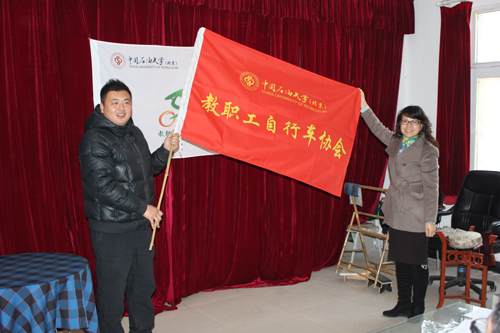 会议审议通过了自行车协会章程,推荐选举了协会会长、副会长及秘书长。会议宣读了自行车协会安全条例,全体会员签署安全承诺书。校工会常务副主席王仲民代表校工会致辞,希望自行车协会能够推动学校自行车运动水平的提高,提高教职工参加体育锻炼,促进身体健康的积极性。工会副主席孔繁青向自行车协会授旗。最后,自行车协会名誉会长陈大恩讲话,他谈到,自己作为一名骑行爱好者,要向自行车协会的成立表示祝贺。作为协会的一员将会以身作则,积极参加协会活动。也希望在协会全体会员的共同努力下,能够组织出丰富多彩的活动,把协会办好,促进学校教职工社团活动水平的提高。