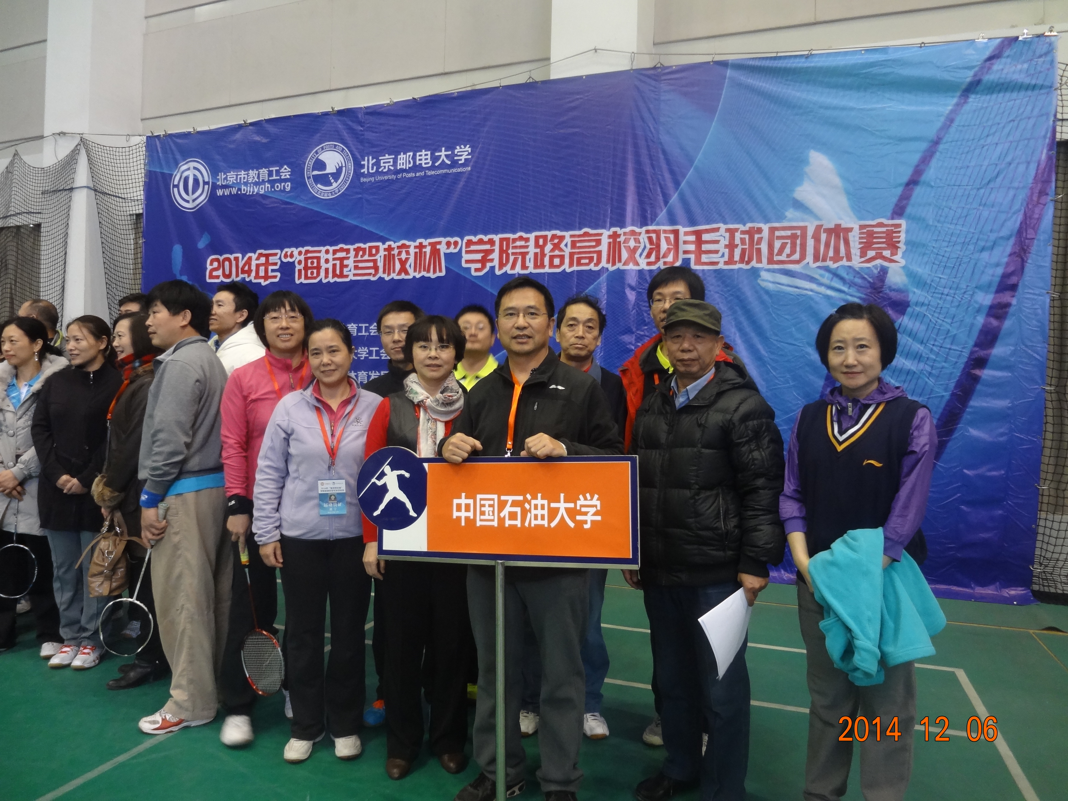 12月6日在北京邮电大学体育馆举行了2014年“海淀驾校杯”学院路地区高校羽毛球团体比赛,比赛吸引了来自学院路地区16支高校教职工羽毛球代表队,共计200余人。我校共有12名教职工参与了此次大赛,比赛分男双、女双、混双3个组别。预赛中,队员们都表现出顽强拼搏的竞技精神,同时也发挥了团队的协作意识,但无奈对手实力太强大,最终遗憾止步于八强。
