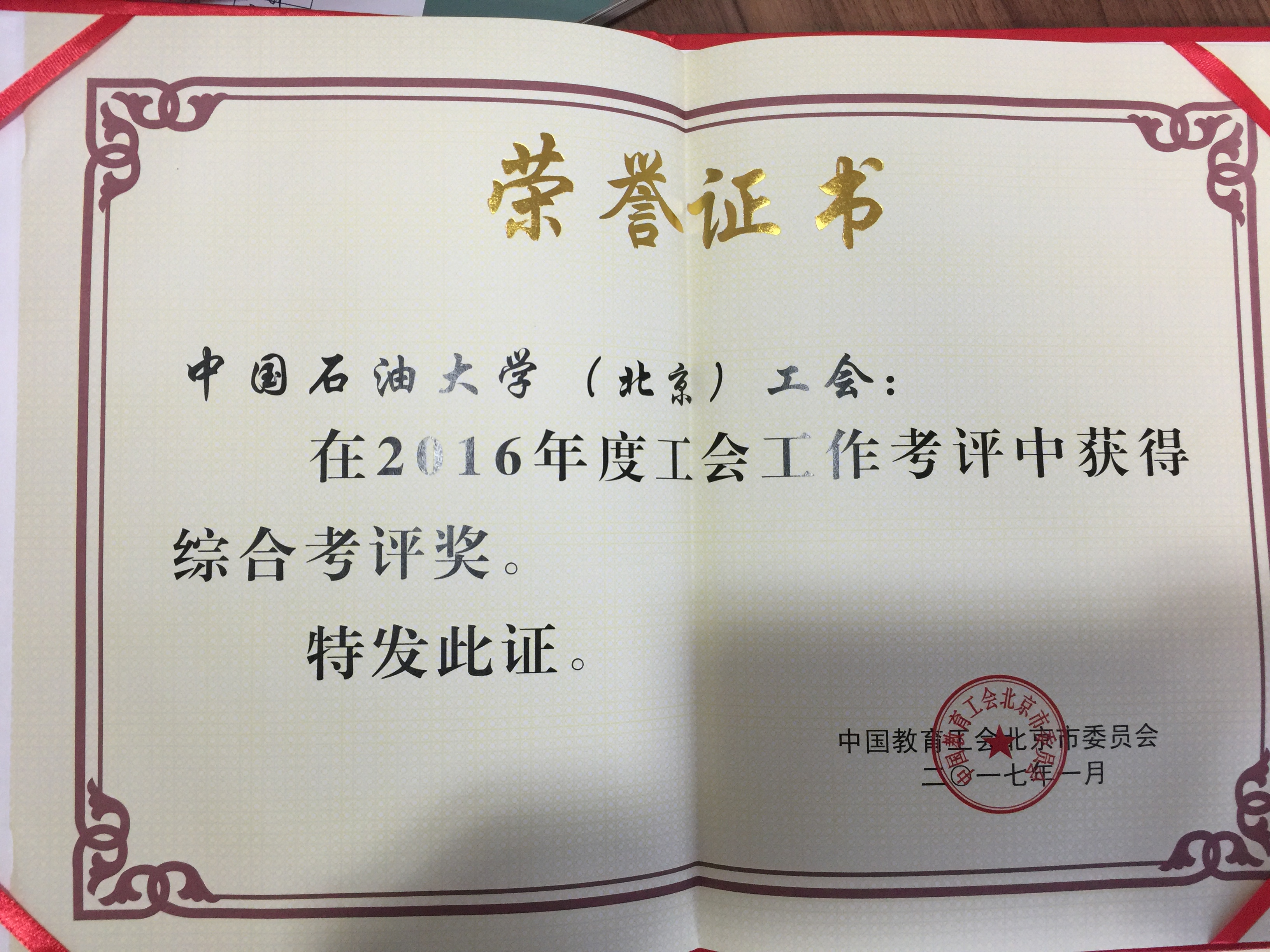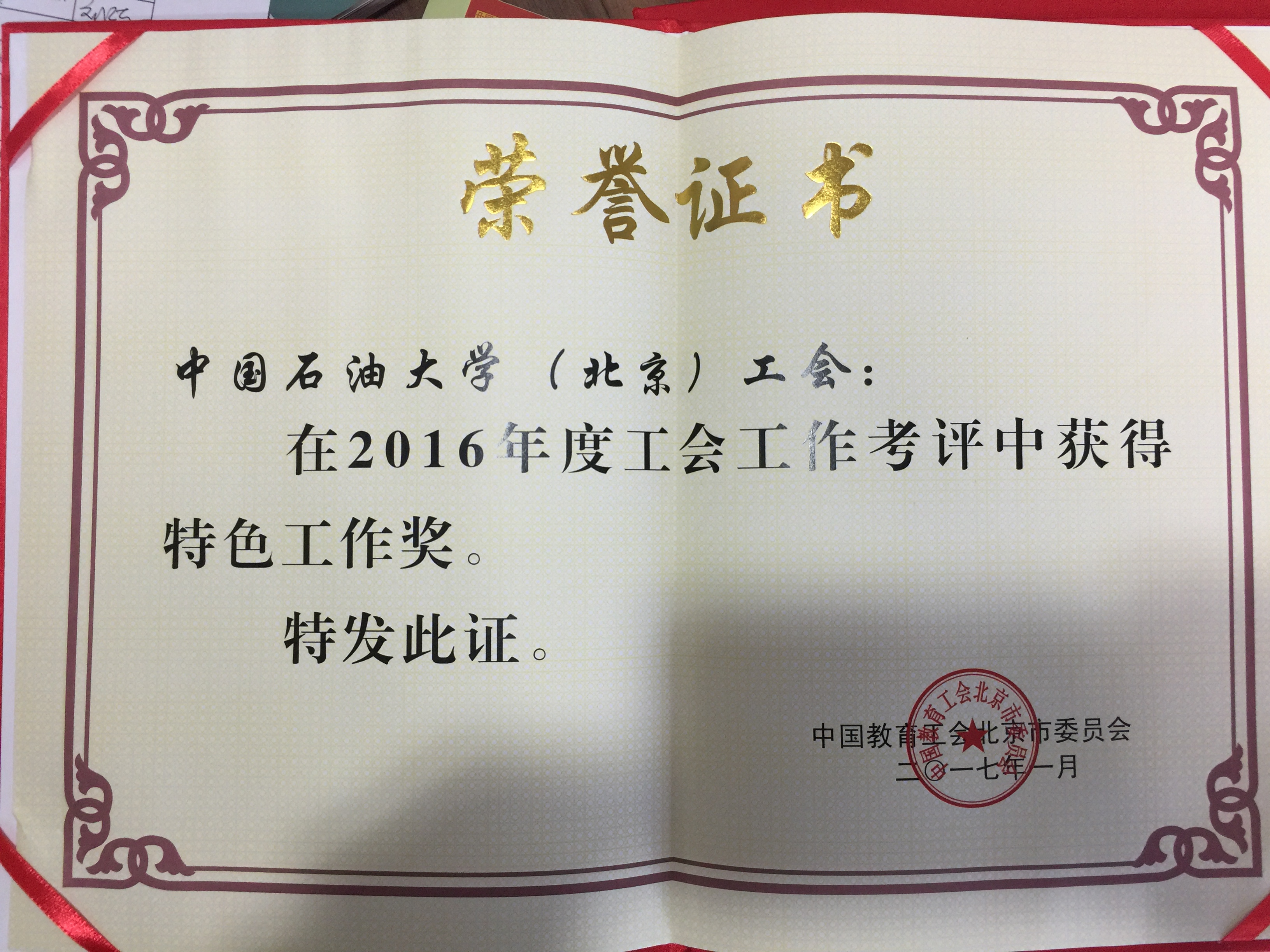 中国石油大学(北京)工会荣获2016年度工会工作“综合考评奖”和“特色工作奖” |