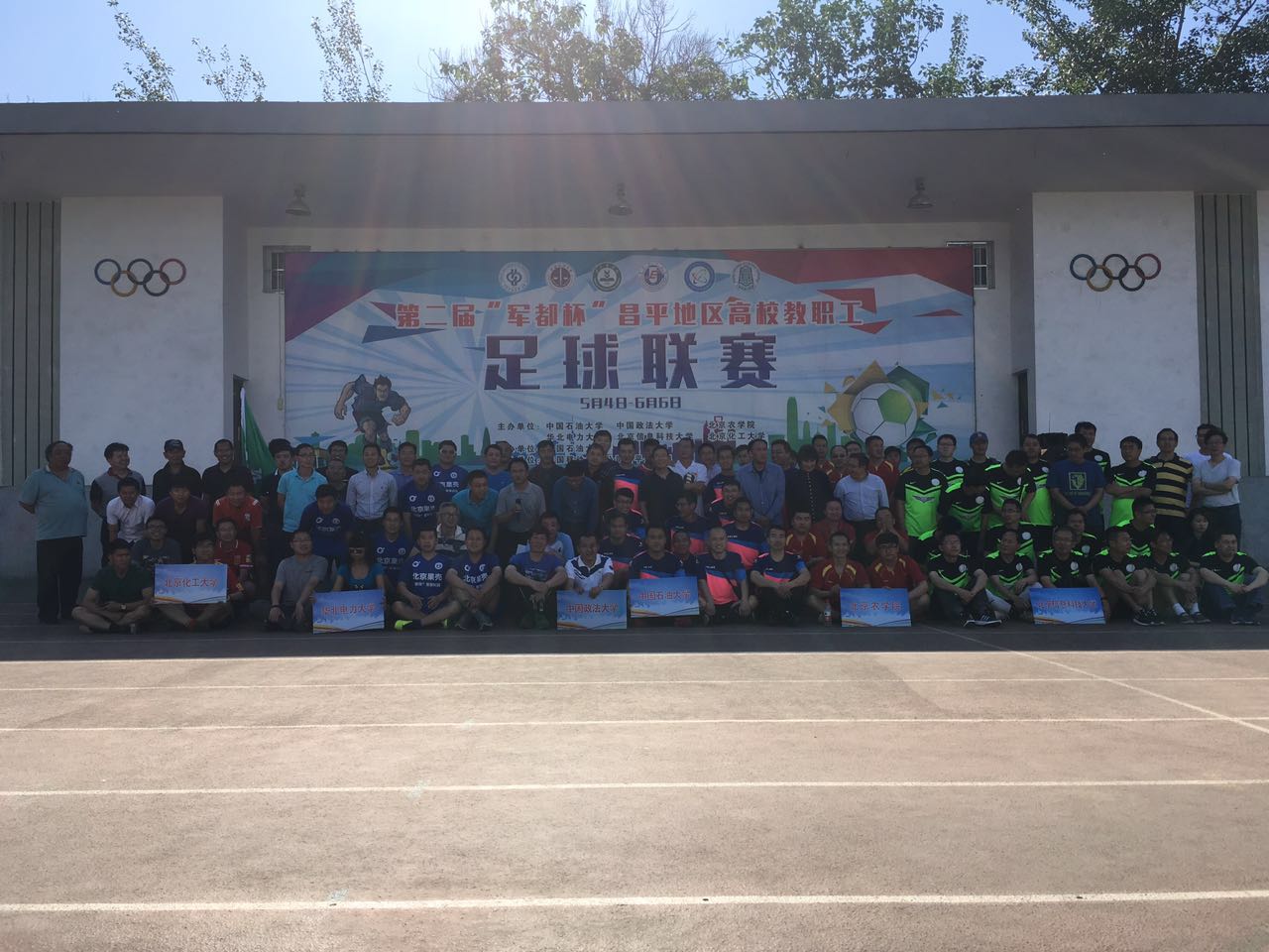 5月10日,第二届“军都杯”昌平地区高校教职工足球联赛在中国石油大学红旗操场开幕,本届比赛共有来自中国石油大学 、中国政法大学、华北电力大学、北京农学院、北京信息科技大学、北京化工大学6支教职工足球队参赛,副校长徐春明教授致开幕词。