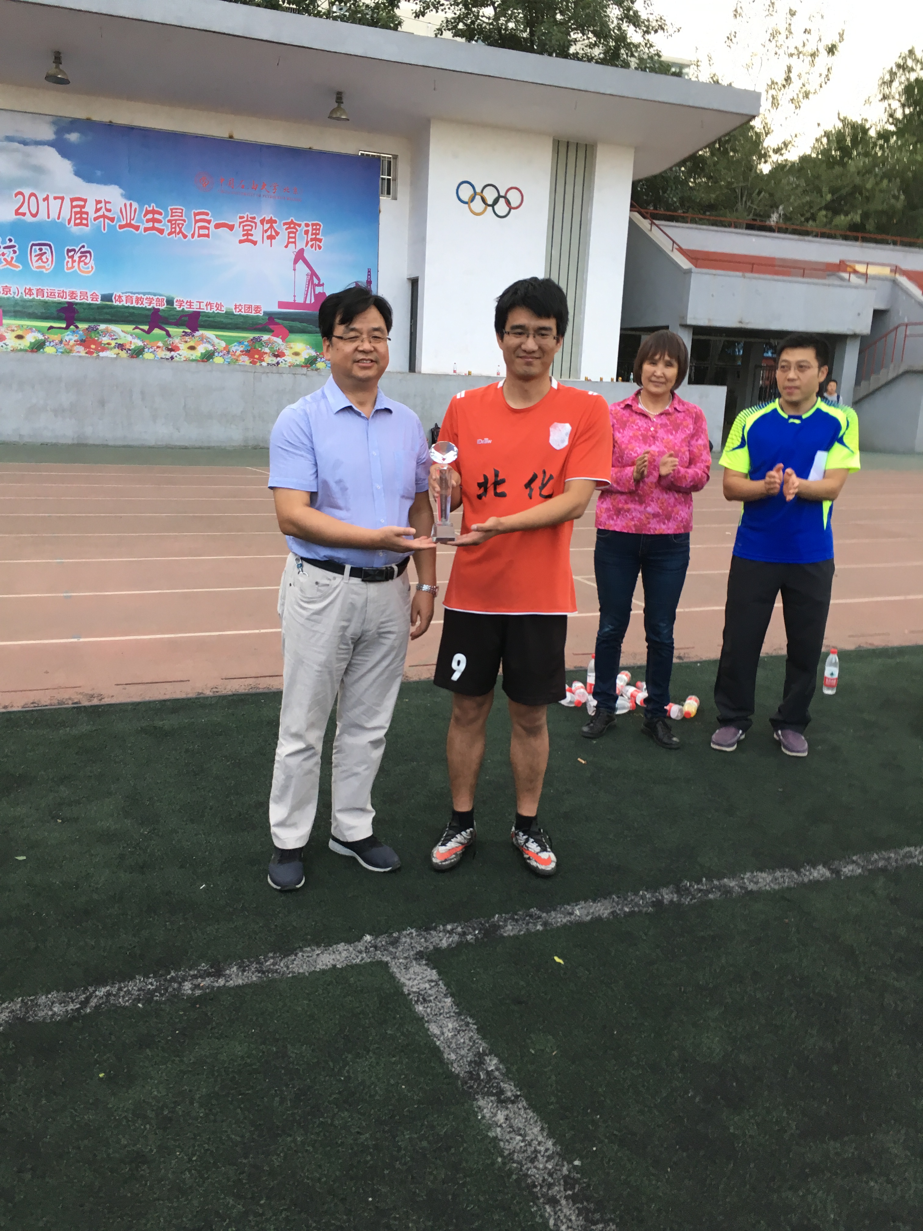 6月8日,由中国石油大学承办的第二届“军都杯”昌平地区高校教职工足球联赛闭幕式在红旗操场举行,来自中国石油大学 、中国政法大学、华北电力大学、北京农学院、北京信息科技大学、北京化工大学的6支教职工足球队及各高校工会负责人参加了闭幕式。石大党委副书记、工会主席刚文哲致闭幕词。