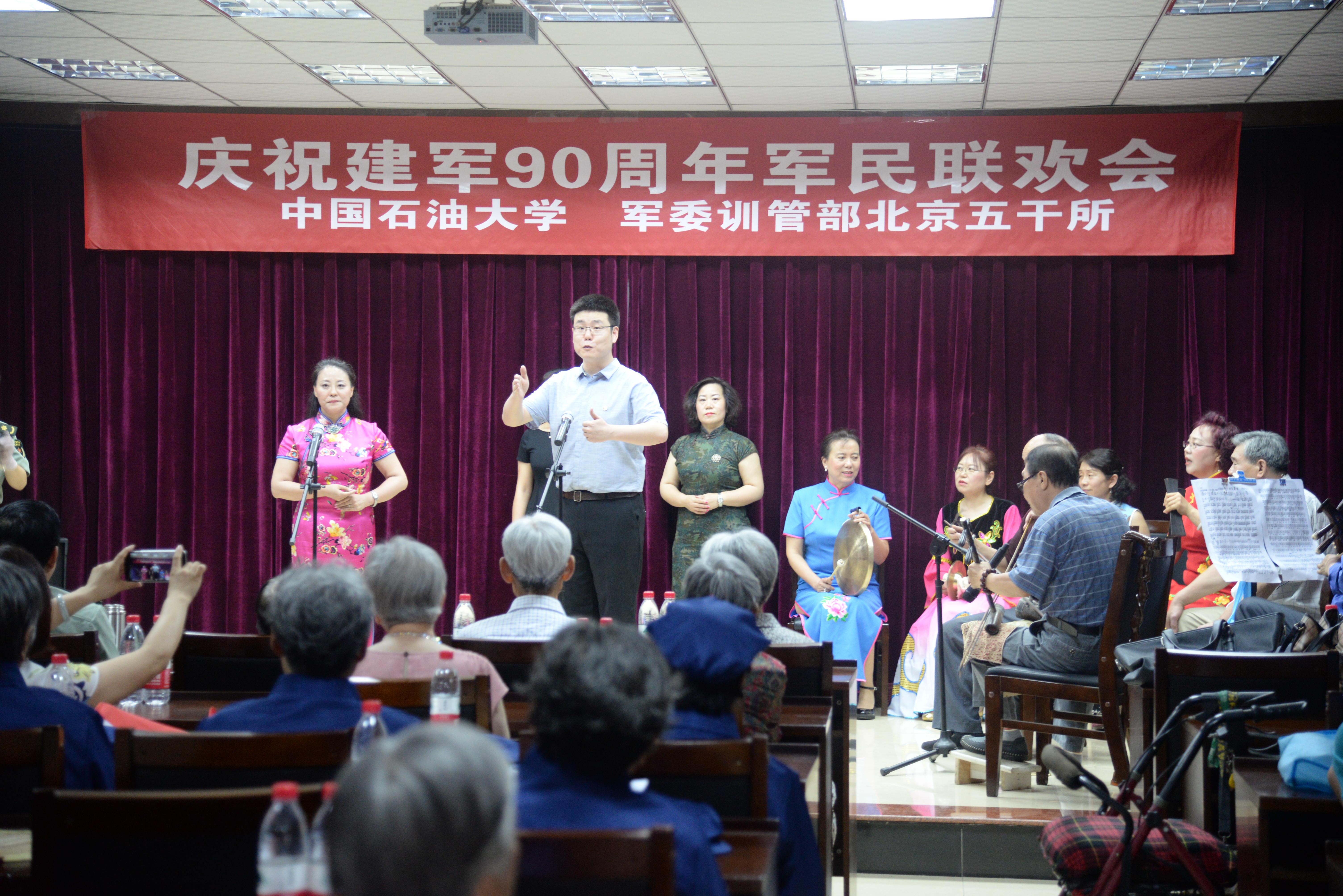 2017年7月5日下午,中国石油大学(北京)工会旗下的多个社团联合到军委训管部北京五干所,同参加抗日战争和解放战争的离休干部及亲属举行了庆祝建军90周年军民联欢会,精彩的演出赢得了老干部们的热烈掌声。中国石油大学(北京)工会副主席孔繁清、继续教育学院院长薛谦、干休所政委陈科等一起参加了当天的联欢会。