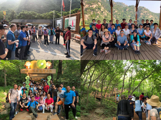 本次活动使用“北京工会12351”APP扫码签到,活动线路为6.5公里盘山步道,多为观光石阶和木栈道,沿途经过猕猴桃观光长廊,海豹望月,鸽子洞等诸多景点。一路上大家欢声笑语,饱览山野风景,领略京郊别样风光。活动正值石大校歌发布暨65周年校庆倒计时100天的日子里,中途休息时,校工会组织参加活动的工会干部学唱校歌《我为祖国献石油》,嘹亮歌声引来众多游客驻足欣赏,得到观众的一致好评。