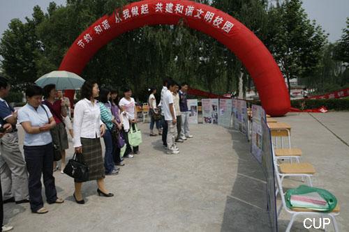 上午10时不到,宣传活动现场就聚集了众多的师生员工。活动现场精心制作的环保知识展板吸引了众多师生员工的目光。这组由21块展板组成的环保知识展览分为环境问题、白色污染、低碳经济和行动起来四个主题,分别向人们展示了当前人类面临的主要环境问题、白色污染及其危害、以低能耗、低污染为基础的“低碳经济”以及人们如何行动起来、从身边的小事做起、积极参与环境保护等内容。工作人员向前来参加活动教职工和学生发放了“日常生活节能潜力”宣传单以及印有“保护环境,人人有责”的帆布环保购物袋。