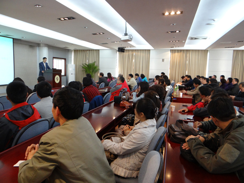 王磊向大家介绍了中华人民共和国教育部令第32号《学校教职工代表大会规定》的制定背景、法律依据,讲解了《规定》与《高等学校教职工代表大会暂行条例》的异同之处,并指出了我校教职工代表大会暂行条例实施细则条款的需要重新修订之处,最后王磊与大家进行了互动,解答了大家提出的问题。
