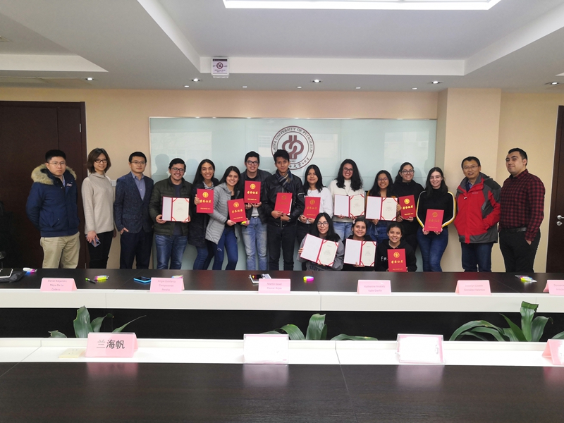 1月11日下午,厄瓜多尔基多圣弗朗斯西科大学孔子学院来华冬令营结业典礼在国际教育学院举行,国际教育学院院长张永学、国际合作与交流处副处长陆尚、冬令营16名学员以及国际教育学院和国际处工作人员参加了结业典礼。