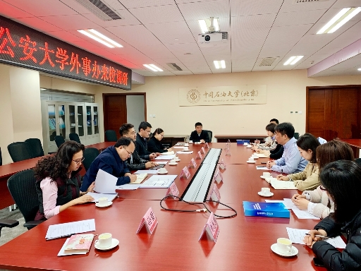 李永峰对刘东华主任一行表示欢迎,介绍了石大目前国际化工作的总体情况。基于公安大学的调研目的,姚军围绕世界能源大学联盟建设,介绍了在前期准备、组织架构、运作模式、联盟章程、宣传工作等方面的经验。随后,双方就联盟网站建设、学生出国项目、因公出访、来访接待、国际合作等诸多议题交流了做法和经验,并在能源安全培训等方面初步达成了合作意向。