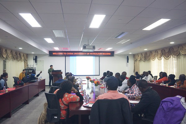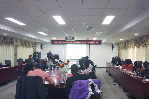 姚军对考察团表示热烈欢迎,介绍了学校的基本情况,并希望考察团通过此次机会走近石大、了解石大。地球科学学院刘成林教授为考察团作了题为“全球油气资源”的精彩讲座,详细介绍了全球油气资源的分布、储量、产量及消费量,并对全球油气发展趋势进行了预测。讲座激起了考察团成员的强烈兴趣,大家纷纷举手提问,热烈讨论交流。