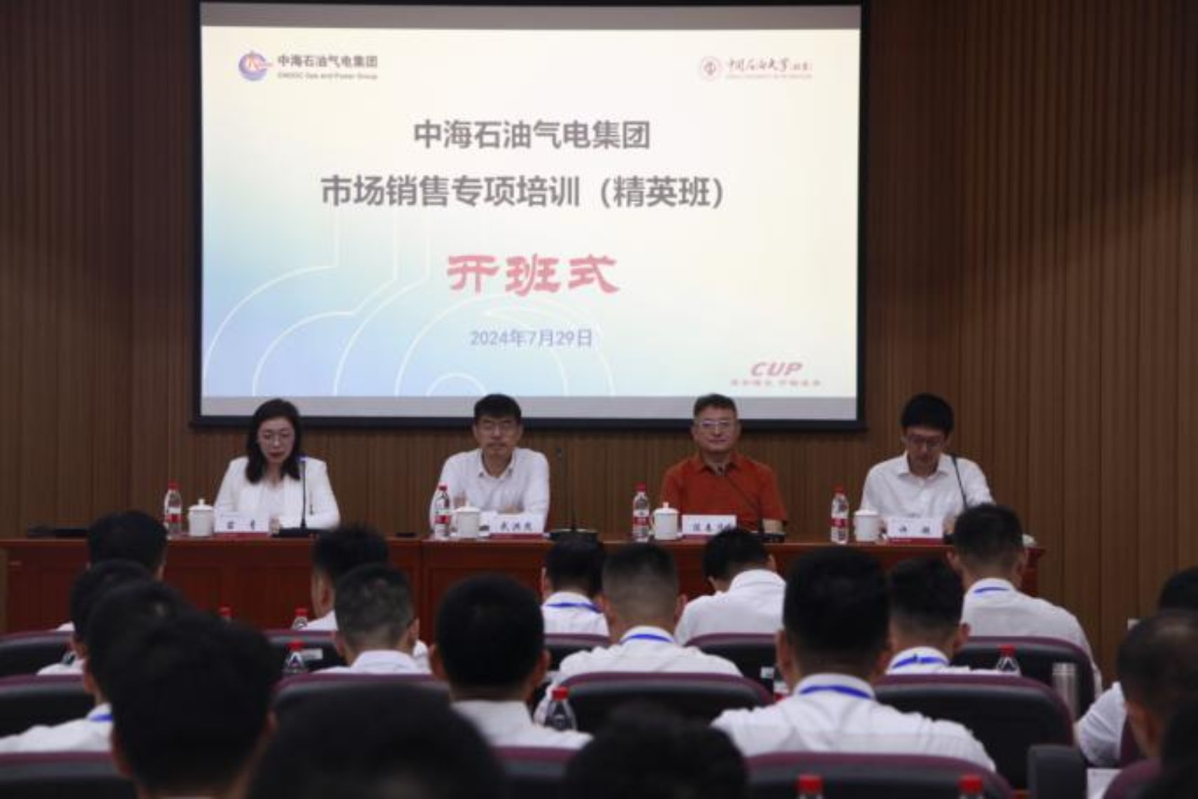 2024年7月29日,中海石油气电集团市场销售专项培训(精英班)在中国石油大学(北京)开班。中海石油气电集团公司副总经济师兼资源与市场部总经理武洪昆和中国石油大学(北京)网络与继续教育学院陈春茂院长出席开班式并讲话。共有来自气电总部部门和所属单位的49名市场销售骨干参训。