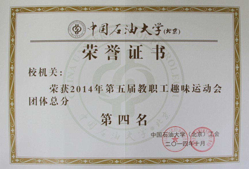 10月25日,中国石油大学第五届教职工趣味运动会在红旗操场举行。机关工会认真组织、积极筹划、奋勇参赛,最终取得了团体总分第四名和优秀组织奖。