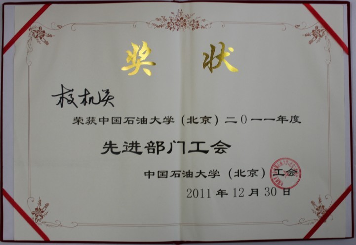 2012年1月12日,校工会总结表彰大会在翠宫隆重召开,表彰一年来在工会工作中作出突出贡献的单位和个人。机关工会获先进部门工会荣誉称号,徐长亮、王都伟被评为优秀工会干部,卢春慧、刘洪洋、王茹、海凤、方莉、吴丹舟 史庆、何闯、吴鹏、金燕、张浩等11位同志被评为工会积极分子。