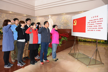 参观学习活动采用现场讲解及自由参观方式进行,讲解员首先详细地介绍了李大钊同志的革命事迹和光辉一生,李大钊先生1889年10月29日出生在乐亭县大黑坨村,1927年4月28日被反动军阀杀害,英勇就义,时年不满38岁。他是中国共产主义运动先驱和最早的马克思主义者,是中国共产党的主要创始人之一。大家在李大钊同志革命事迹介绍和遗物前驻足,认真、详细地学习介绍内容。最后,全体党员在支部书记带领下,重温入党誓词,在党旗前庄严宣誓。