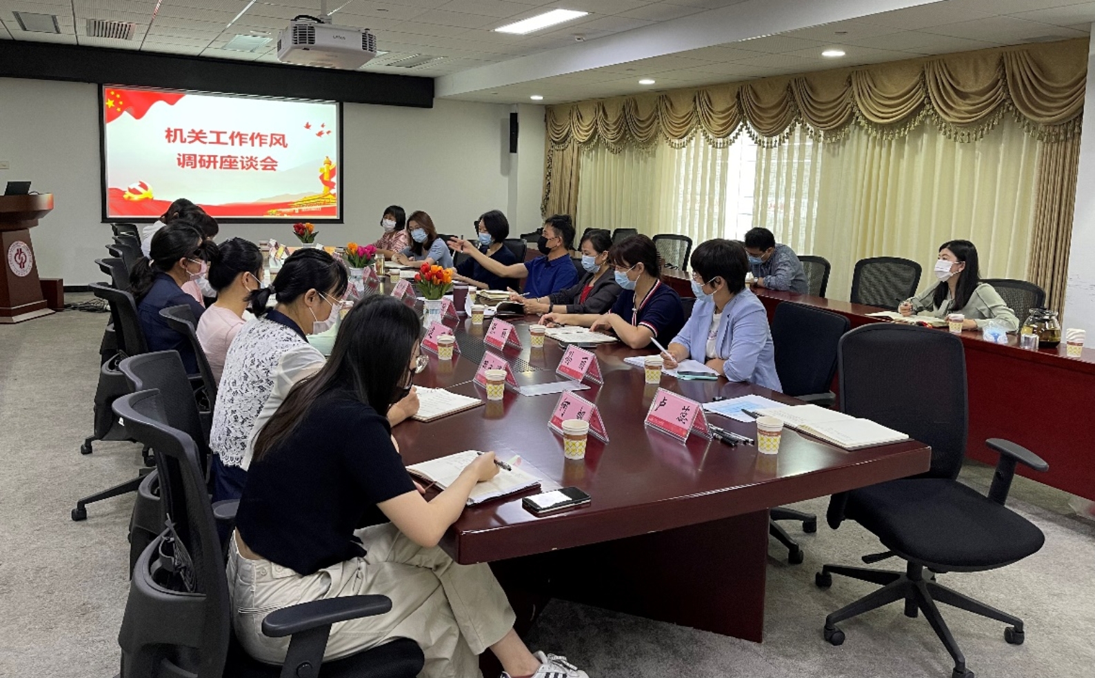 会上,王仲民通报了半年来机关工作作风建设工作的筹备和推进情况。各参会代表结合工作实际和切身体验,对机关整体工作作风、办事效率、服务态度和水平给予了中肯评价,并围绕进一步明确工作职责、强化沟通协调、推进信息化和无纸化办公、提升管理共情能力、落实“以师生为中心”的服务理念等问题展开热烈讨论,提出了具体的意见和建议。
