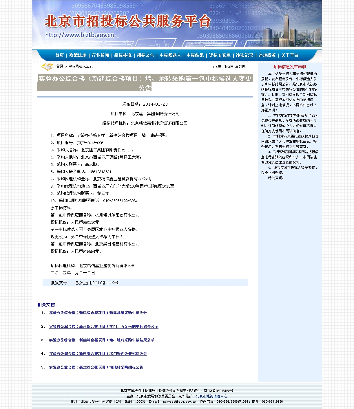 附图:北京市招投标公共服务平台网中国石油大学(北京)实验办公综合楼(新建综合楼项目)墙地砖采购中标候选人变更公告