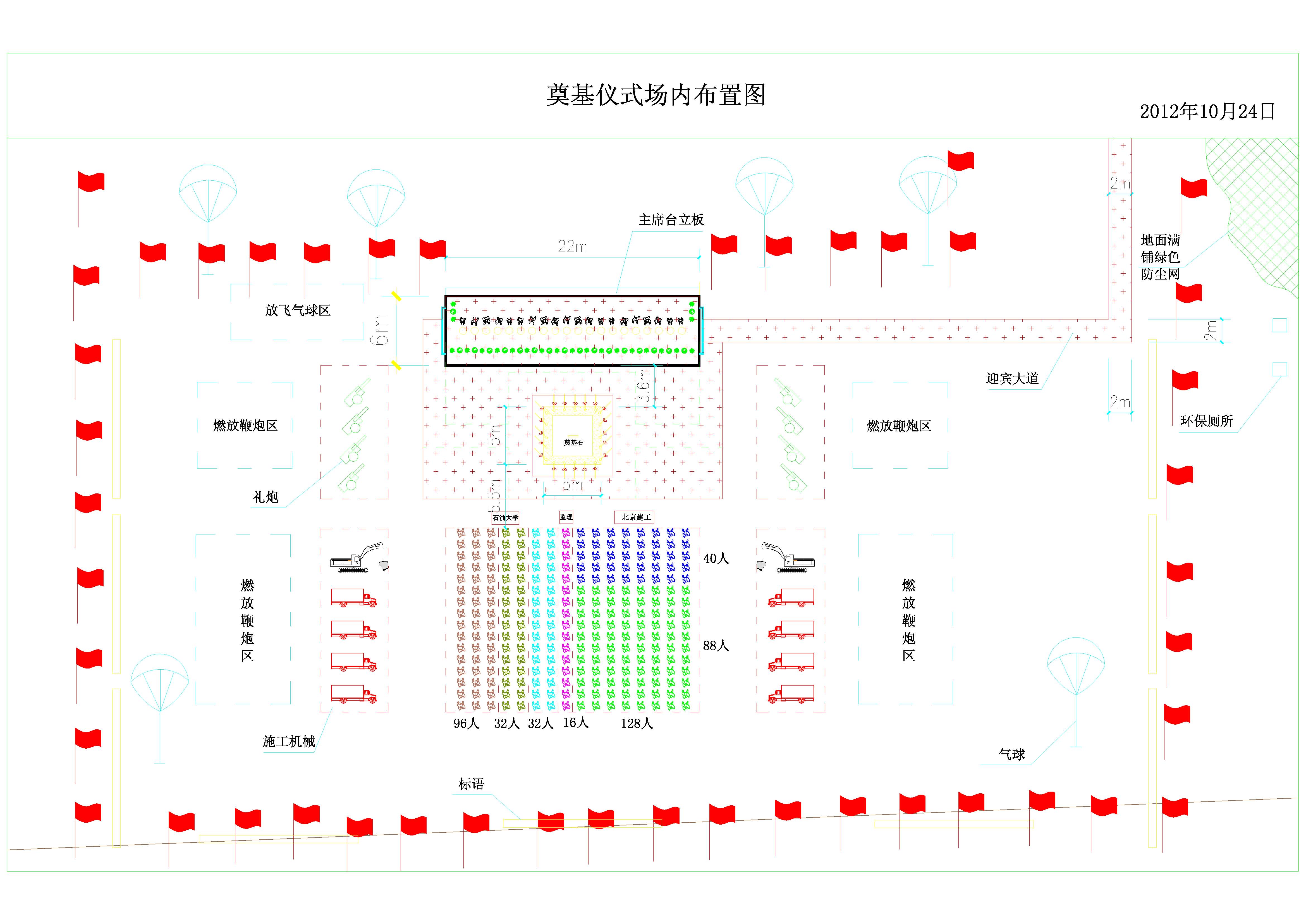 6. 主持人宣布“奠基揭幕”,台上嘉宾陪同观礼(工程车运行鸣笛、气球升空、礼花炮、播放音乐等营造隆重热烈气氛);