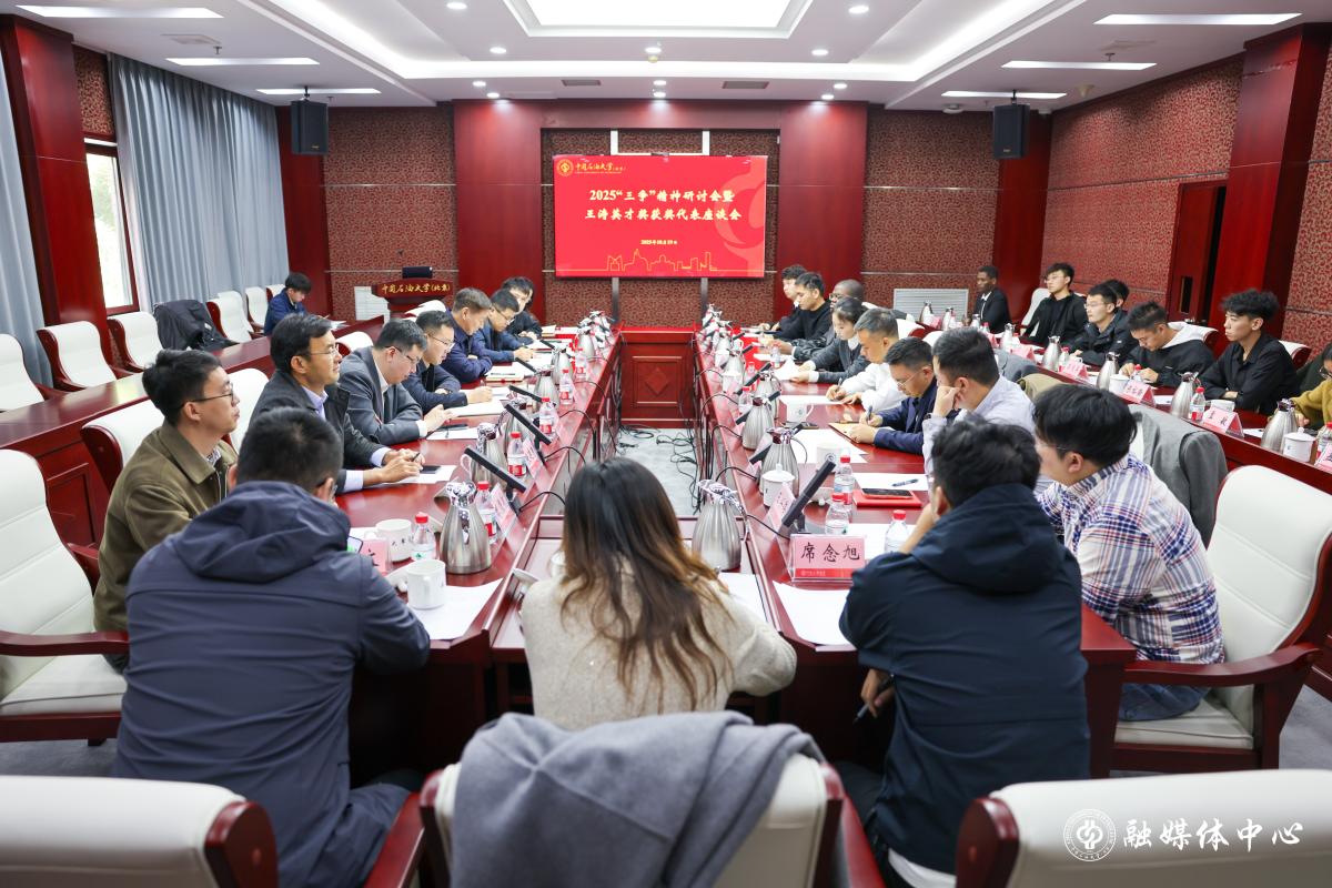 10月19日上午,“三争”精神研讨会暨王涛英才奖获奖代表座谈会在中石大召开。中国石油大学(北京)党委副书记、北京中国石油大学教育基金会理事长文永红,中国石油教育学会理事、王涛英才奖学金管理委员会成员王志明,中国石油大学(北京)、中国石油大学(华东)、长江大学、河北石油职业技术大学等单位相关负责同志,学校党政办公室、党委宣传部、学生工作部(处)等部门相关负责人以及20位王涛英才奖获奖代表参会。
