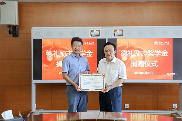 8月23日,石大机械与储运工程学院2003级校友贾德礼向北京中国石油大学教育基金会捐赠100万元设立“德礼奖学金”,支持学校发展建设。