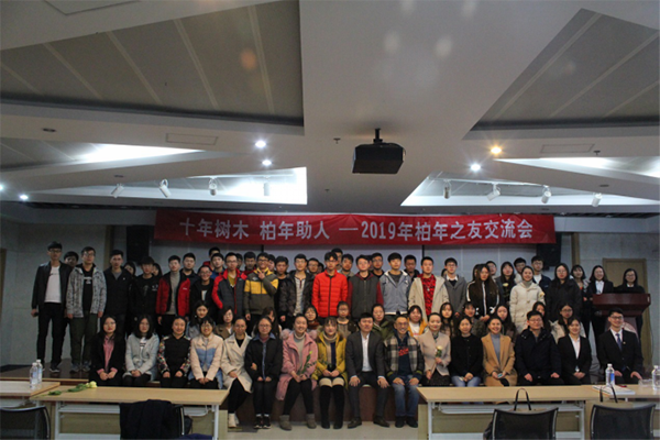 座谈会后,王柏年一行与石大受助学生在学生活动中心开展了“十年树木 柏年助人——2019年柏年之友交流会”。来自不同班级的受助学生演唱了歌曲《地质人》《感恩的心》《远走高飞》、表演了诗歌朗诵《梦想现实》,表达了感恩之情,以及勇敢坚定面向未来的决心。王柏年作了题为“如何做个迷人有气质的人”的报告,希望同学们多健身、多运动,保持一个健康良好的状态,提高自己的气质和自信,鼓励同学们在校期间多服务社会、多做公益、努力学习,享受成长的快乐。姚雪松、康璇、马丽娜结合自身的经历,分享了人生经验以及工作感悟,勉励同学们把握好生命中的每一分每一秒,立足专业学习,不断充实自己,做自信自立自强的大学生。