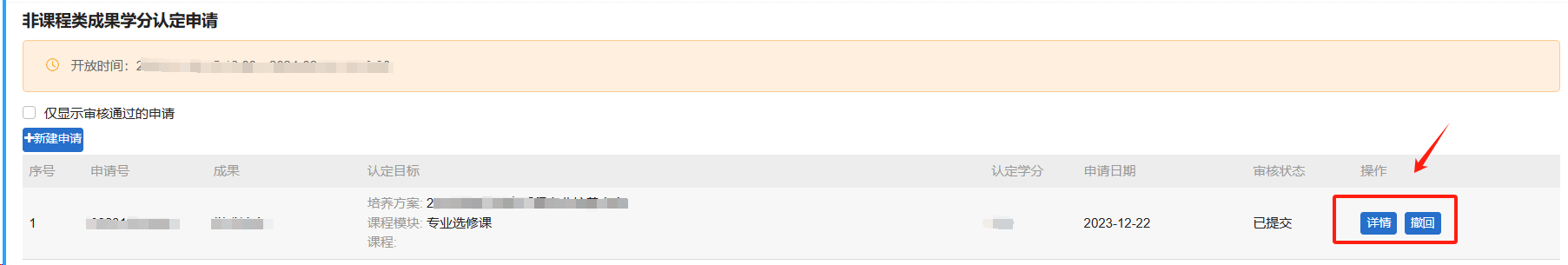 3. 提交申请以后,可点击申请后的“详情”查看审核进度,未审核时也可以点击“撤回”后重新修改提交。
