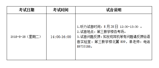考试时请考生携带校园一卡通,自备听力用的耳机及电池、2B铅笔、黑色签字笔、橡皮等文具。