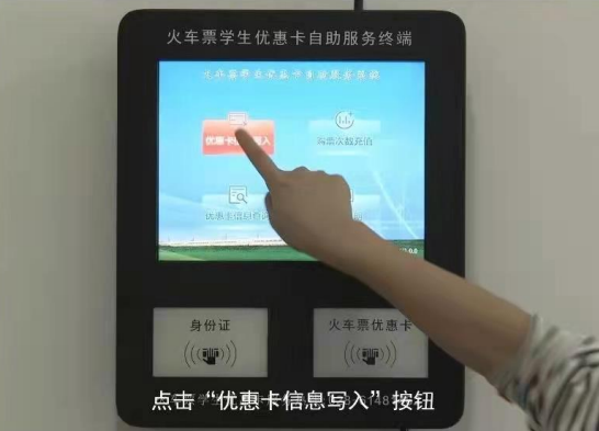 回答:学生可以在本科教务系统申请“更换磁条”,根据审批意见携带学生证前往主楼B218更换火车票优惠卡后,携带学生证、身份证到校内浴室三楼、润杰公寓1号楼、2号楼的“火车票学生优惠卡自助服务终端”重新进行写卡。
