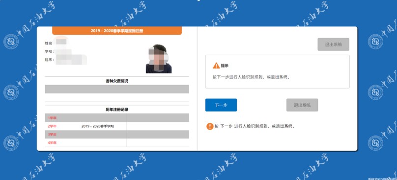 人脸识别成功后,点击“打印标签”, 成功打印后,将中间标签撕下,贴在学生证相应的学期,代表本学期注册完成。