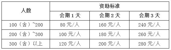 *会期半天时资助标准按全天的70%计算;会期超过3天时,只资助3天会期费用。
