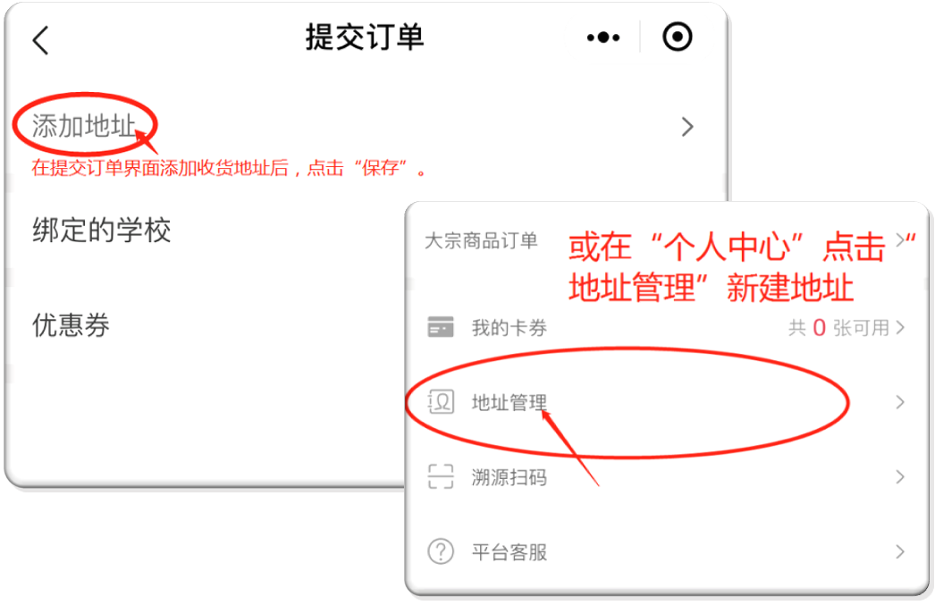 1.返回小程序首页,搜索框中输入“南华”,出现南华县农产品页面。(购买的是南华县产品)