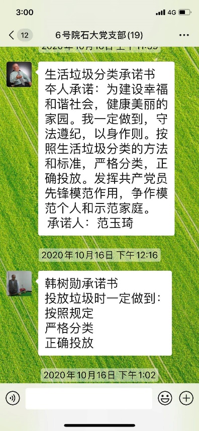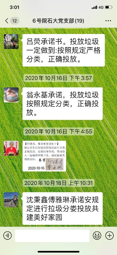 按照离退休党委的要求,离退休石板房6号院党支部于10月16日在支部微信群里部署了10月份组织支部党员开展一次“垃圾分类我践行”主题党日活动。