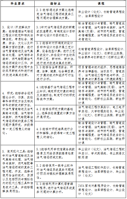 1. 工程知识:能够将数学、自然科学、工程基础和专业知识,用于解决油气管道输送及油气集输与处理、油气储存与装卸、燃气输配等油气储运领域中的复杂工程问题。