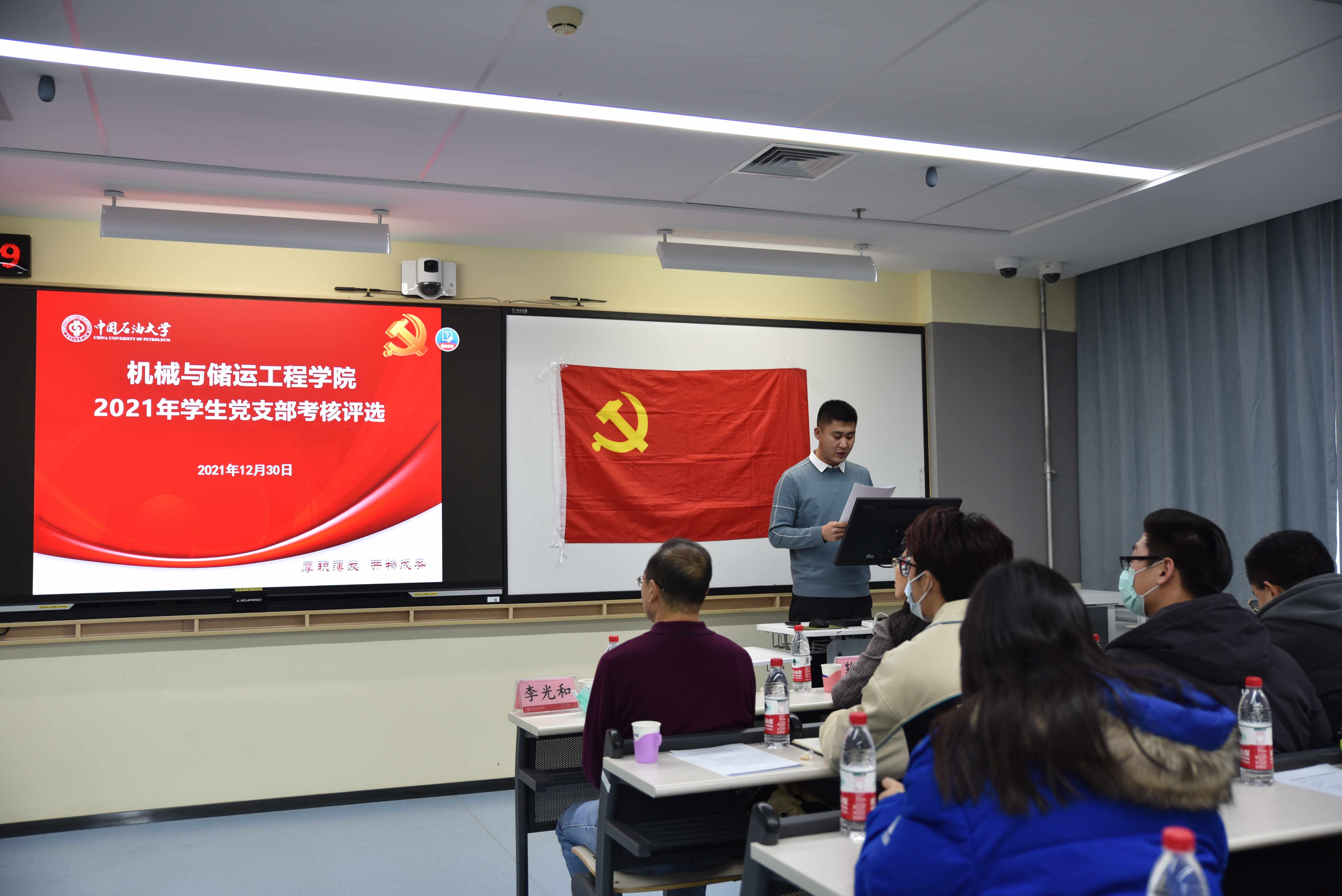 为深入学习贯彻习近平新时代中国特色社会主义思想,推进机械与储运工程学院学生党支部的标准化规范化建设,总结在党史学习教育和庆祝建党百年期间有关学习和建设情况,更好发挥学生党支部战斗堡垒作用和党员先锋模范作用,12月30日下午,机械学院召开2021年度学生党支部考核评选大会。机械与储运工程学院党委书记李光和、副书记鞠斌杰、全体辅导员参加会议。会议由辅导员陈化楠主持。