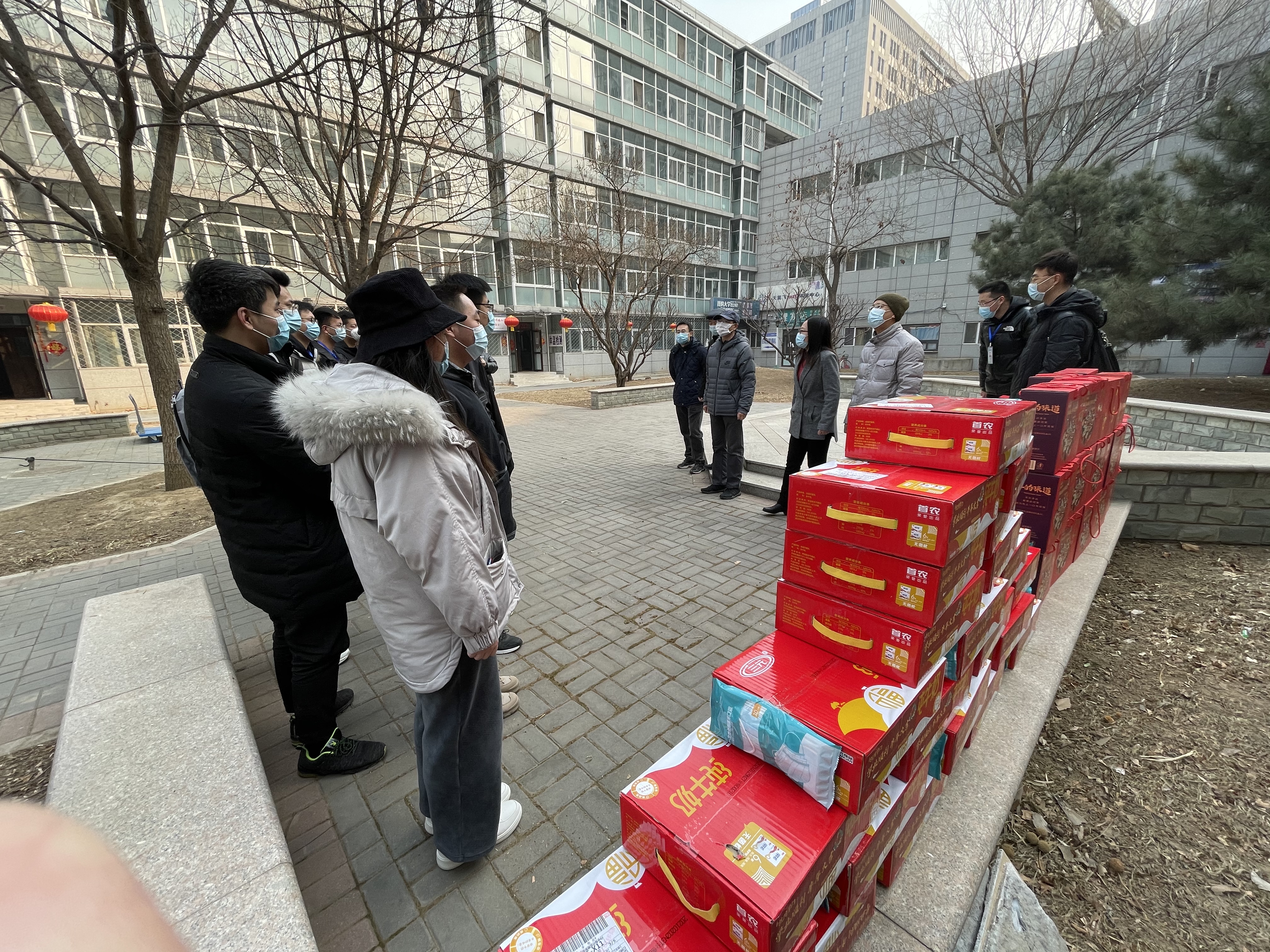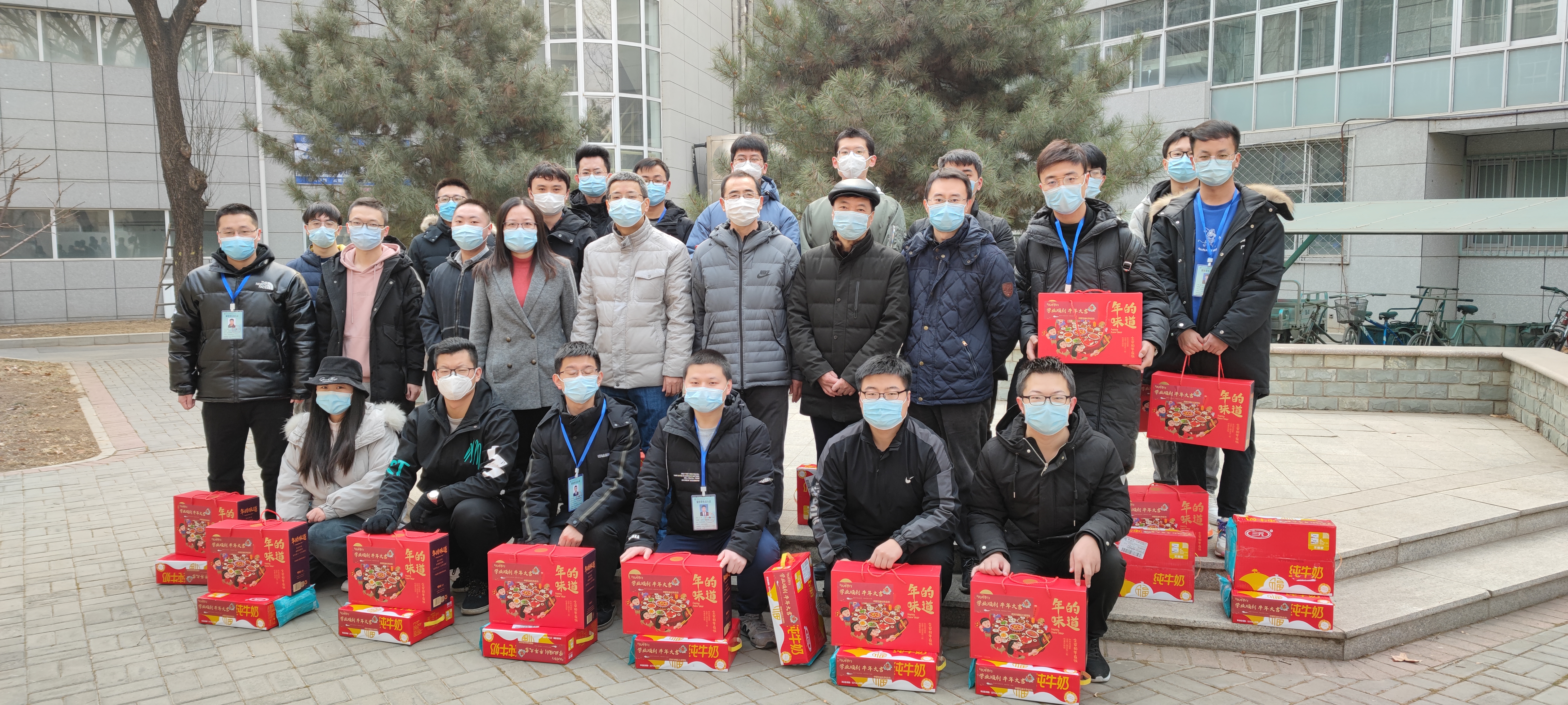 随后,院领导们向留校学生送上了坚果礼包、牛奶礼盒和防疫口罩,礼盒上均带有学院自制的“祝同学们学业顺利,牛年大吉”字样的暖心贴,并以此祝愿同学们新年快乐,学习进步。