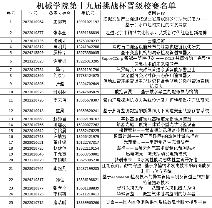 晋级校赛项目公示如下: