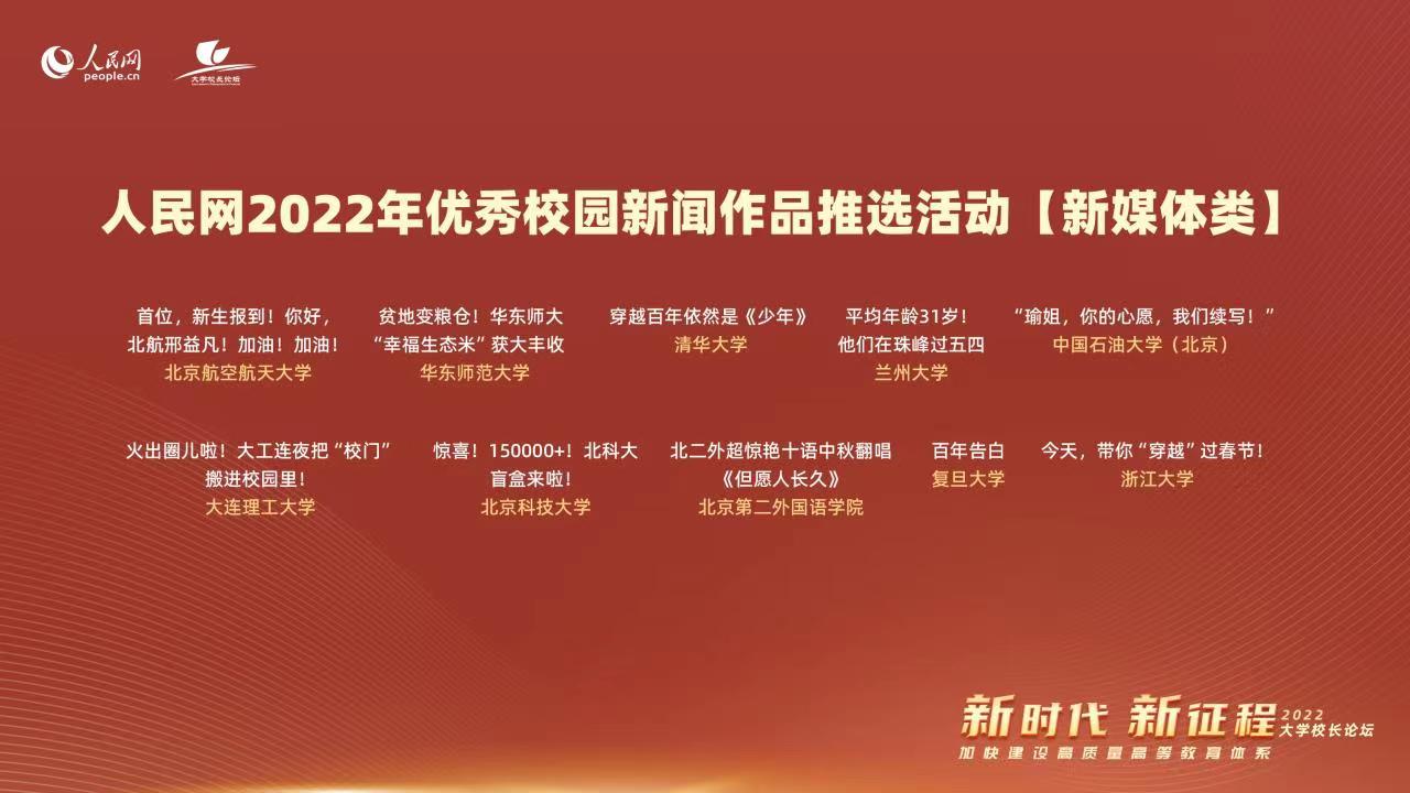 论坛上发布了《2022年高校思政课改革创新情况分析报告》,公布了“人民网2022年高校优秀校园新闻作品”名单。中国石油大学(北京)《“风华传薪”多元立体网络“大思政课”平台》入选高校思政课改革创新典型案例,《“瑜姐,你的心愿,我们续写!”》入选优秀校园新闻作品(新媒体类)。
