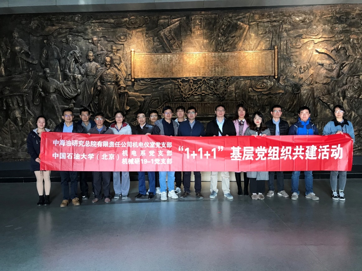为加强校企合作和产学研协同创新,近日中国石油大学(北京)机械与储运工程学院机电系党支部、机械研19-1党支部与中海油研究总院有限责任公司工程研究设计院机电仪室党支部开展“1+1+1”校企基层党支部共建活动,通过召开校企研讨会、举办参观北京市廉政教育基地主题党日活动,加强校企党建工作交流互动。