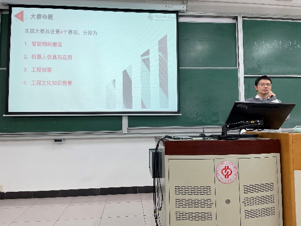 借此机会,肖华平老师还为大家介绍了关于北京市大学生工程实践与创新能力大赛的相关情况。北京市大学生工程实践与创新能力大赛包括智能物料搬运、机器人仿真工程知识竞赛等4个赛项,肖华平老师对4个赛项做了具体的解读,为学生参赛作出了指导。
